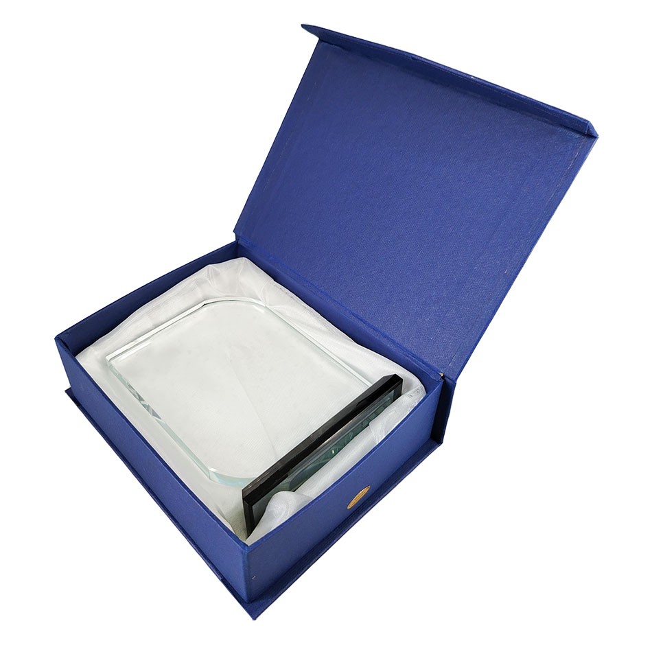 درع كريستال مع علبة كرتون (12 سم) - موديل j-6 مناسب للجوائز والتكريمات، ويأتي بعلبة كرتون للحفظ والتقديم بشكل مرتب.
