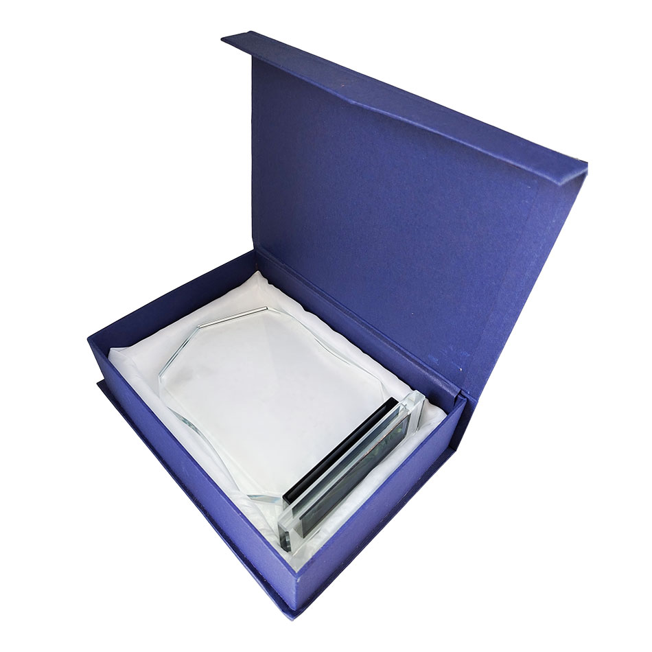 درع كريستال مع علبة كرتون (16 سم) - موديل Q-27 مناسب للجوائز والتكريمات، ويأتي بعلبة كرتون للحفظ والتقديم بشكل مرتب.